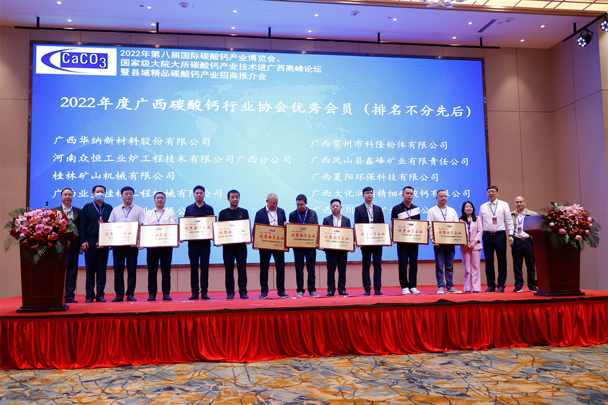 大會上,為鼓勵廣西碳酸鈣行業協會會員企業繼續推動碳酸鈣產業蓬勃發展,經過會員推薦、專家論證和對外公示,桂林礦山機械有限公司從眾多的企事業會員單位中脫穎而出,連續多年榮獲“廣西碳酸鈣行業協會年度優秀會員企業”榮譽稱號。