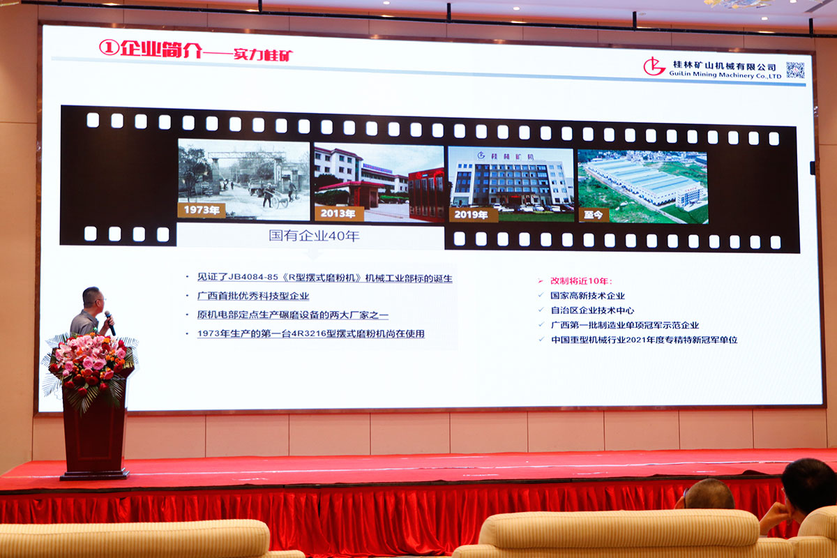 作為行業久負盛名的粉體設備研發、制造企業,桂林礦機副總工程師、研發部經理王劍瓊應邀出席并作大會發言,他回顧了桂林礦機在國有企業40年里頭的榮譽,見證了《R型擺式磨粉機》行業標準的誕生;改制后不斷與時俱進開拓創新,榮獲國家高新技術企業、自治區“專精特新”中小企業、第一批制造業單項冠軍示范企業等殊榮。