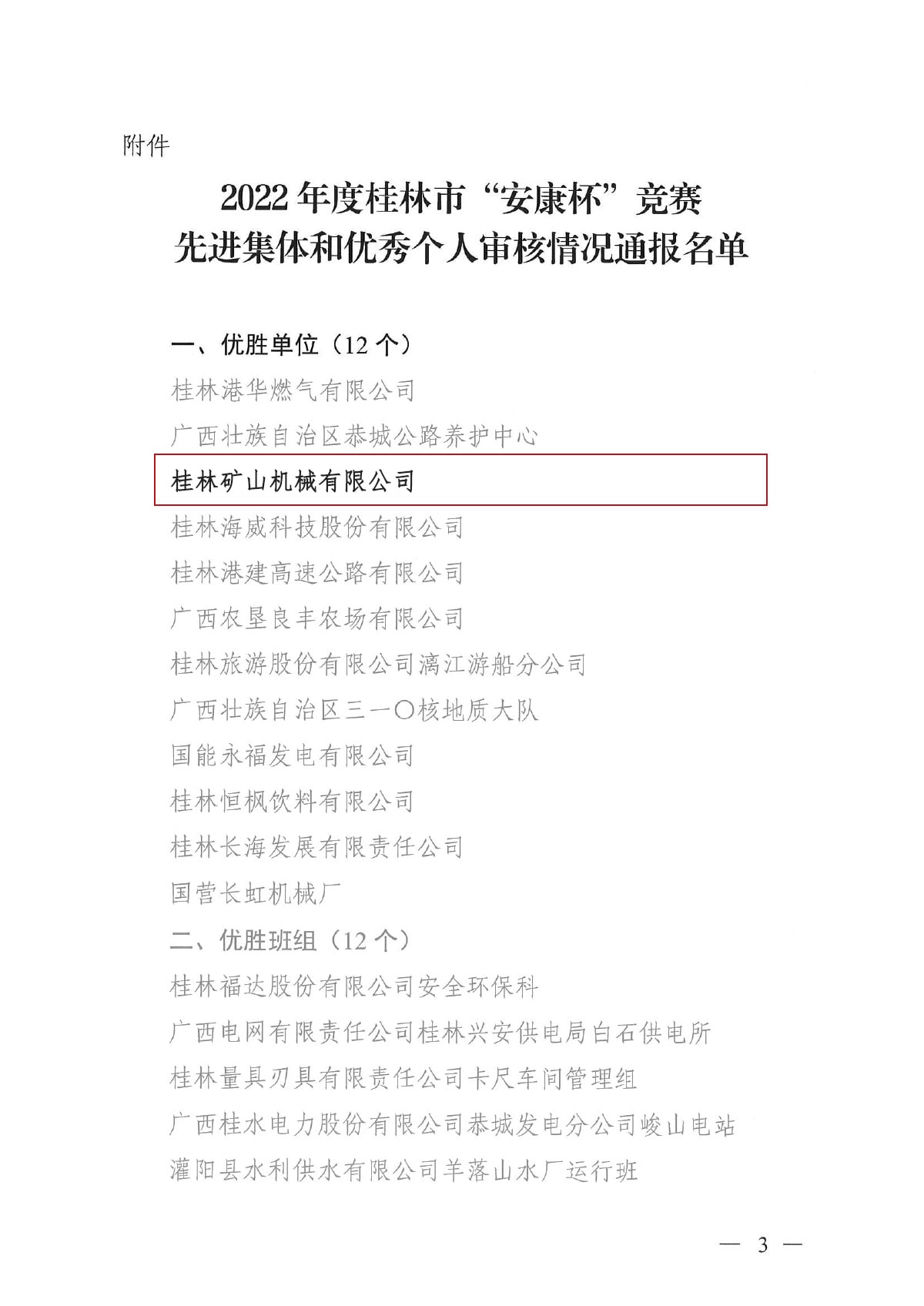 正是基于這樣的努力和付出,桂林礦機在“安康杯”競賽中取得了優異的成績。經過桂林市總工會和桂林市應急管理局的嚴格審核和評比,桂林礦機憑借其出色的表現和安全管理的卓越成果,榮獲了優勝單位的稱號。