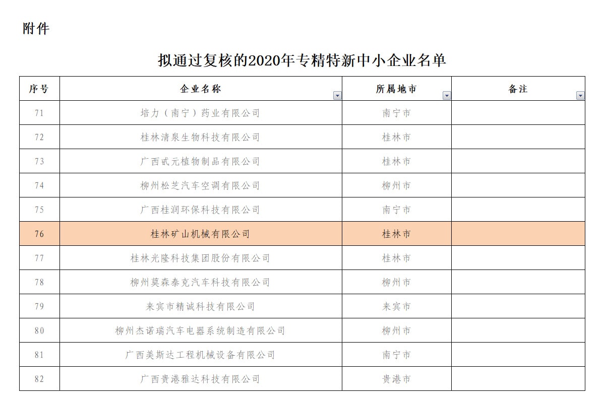 近日,自治區(qū)工信廳公布了2020年專精特新中小企業(yè)復(fù)核結(jié)果,桂林礦機(jī)憑借卓越的技術(shù)創(chuàng)新能力和突出的市場(chǎng)表現(xiàn),被列入復(fù)核通過名單。